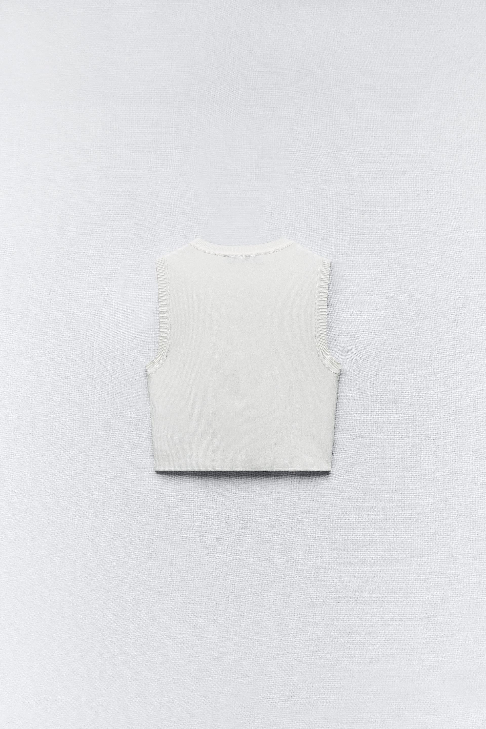 Zara Woman Basics Basic Cropped Knit Top White 3519 025 Divanidosa